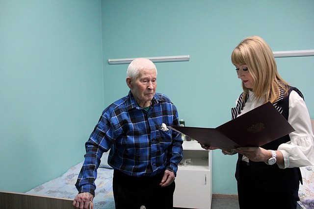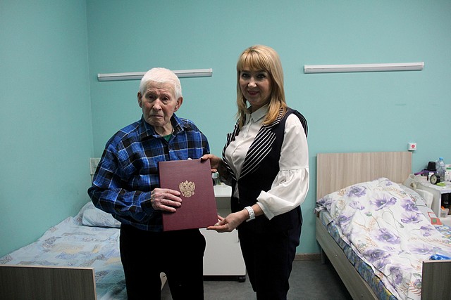 Кроме того, сегодня, 31 января, свое 95-летие отмечает труженик тыла, ветерана труда Шестопалов Виктор Федорович. Елена Семейкина прочитала ему поздравление с юбилеем от президента России и вручила подарок от администрации города.