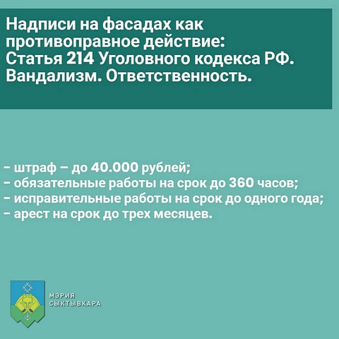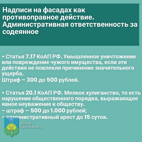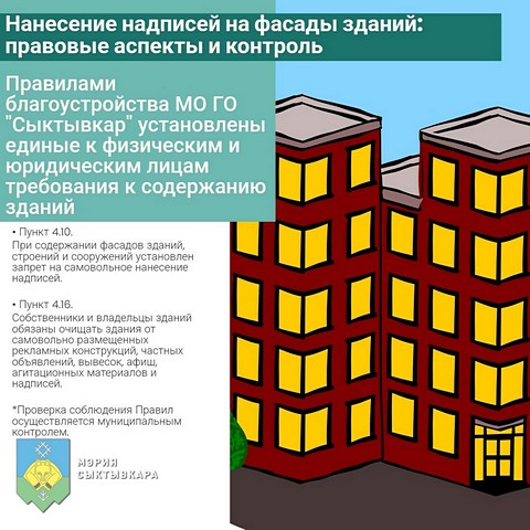 Администрация Сыктывкара информирует об ответственности за нанесение надписей на фасады зданий